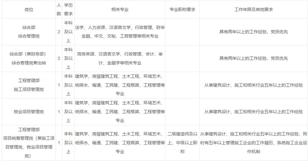 共5个岗位,计划招聘7人,具体岗位招聘条件如下: