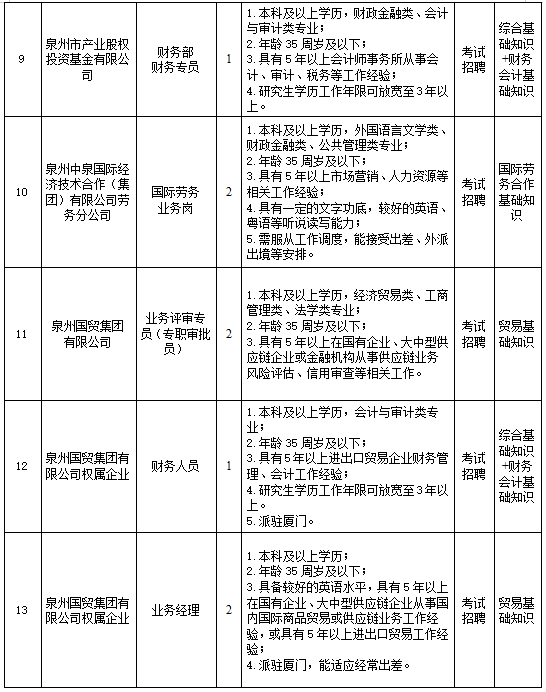 泉州发展集团及权属企业本次面向社会招聘工作人员49名。具体岗位如下: