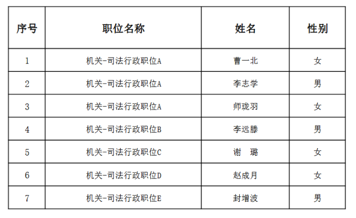 根据《河北省2025年度公务员录用省市县乡四级联考工作实施方案》的要求,经网上报名、笔试、证件审核、面试、体检、考察等程序,拟录用曹一北等7名同志为河北省高级人民法院公务员。现予公示,公示期为5个工作日。公示期间,如有异议,请向河北省高级人民法院政治部反映。联系电话:87937033附:《拟录用人员公示名单》