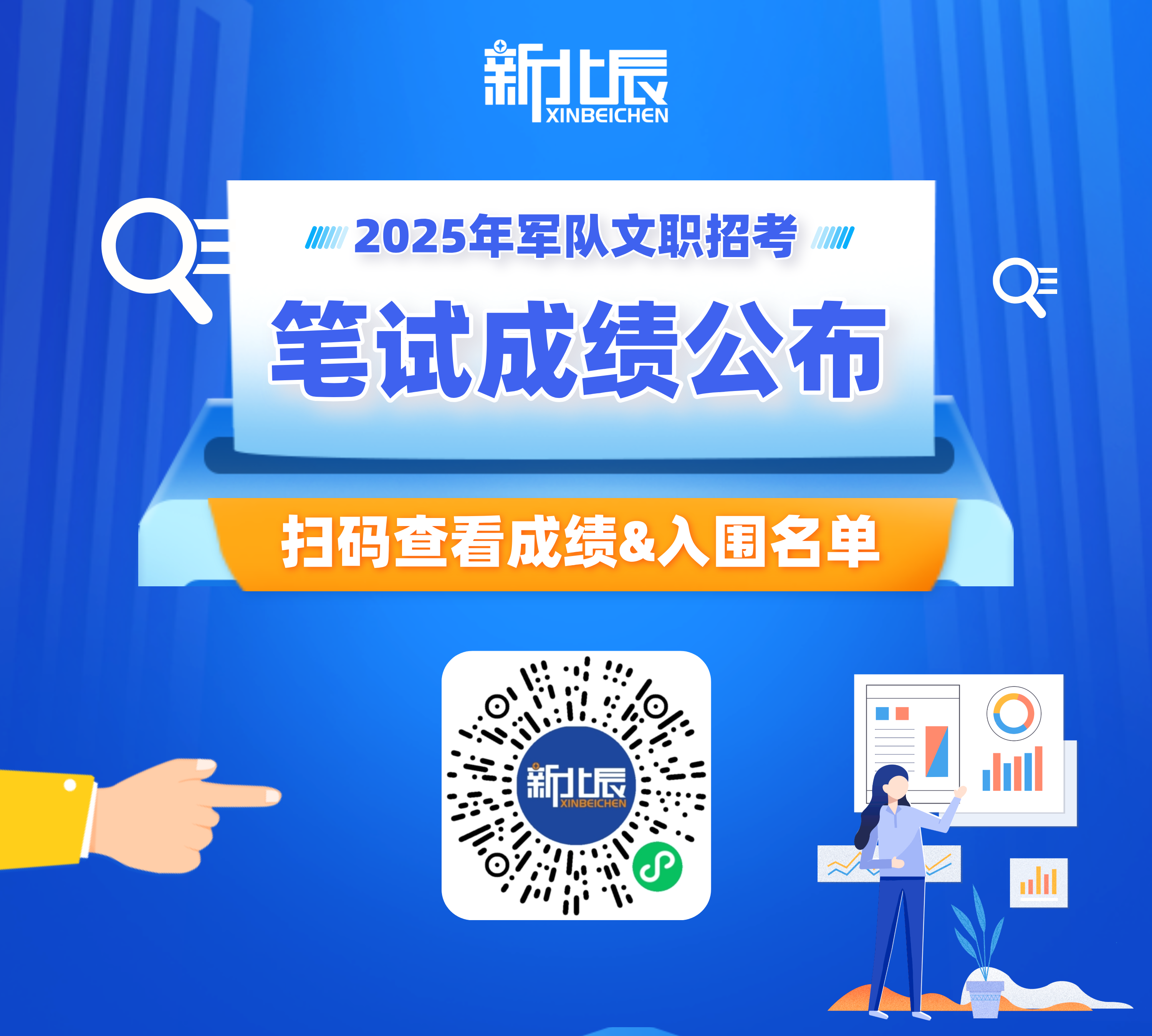 近日,2025年军队文职人员公开招考笔试阅卷评分工作已按计划完成。考生可于2025年2月12日15时至2月18日18时,通过军队人才网首页“成绩查询入口”、中国军号APP“文职招考—报考跟踪”或者“八一通”APP“文职招考—报考跟踪”栏目,凭用户名和密码查询本人笔试成绩。