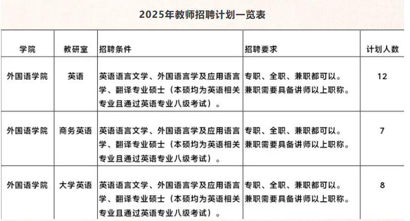 2025年教师招聘计划一览表