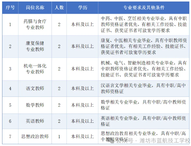 原标题:潍坊市蓝航技工学校教师招聘简章