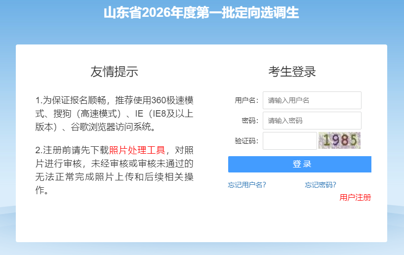 2026山东省选拔录用选调生(第一批:专额定向)报名入口