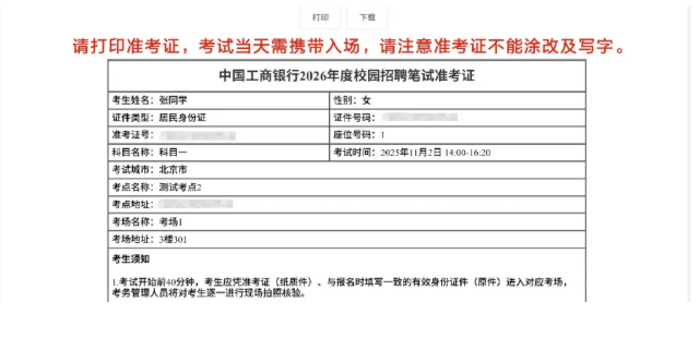 原标题:笔试通知 | 工行2026年度校招笔试通知已发送,请及时预约考点