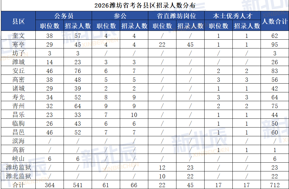 2026潍坊公务员招考趋势、各县区岗位招考情况如何,新北辰教育对比往年招考公告,从中总结出以下需要注意的事项供各位考生参考。