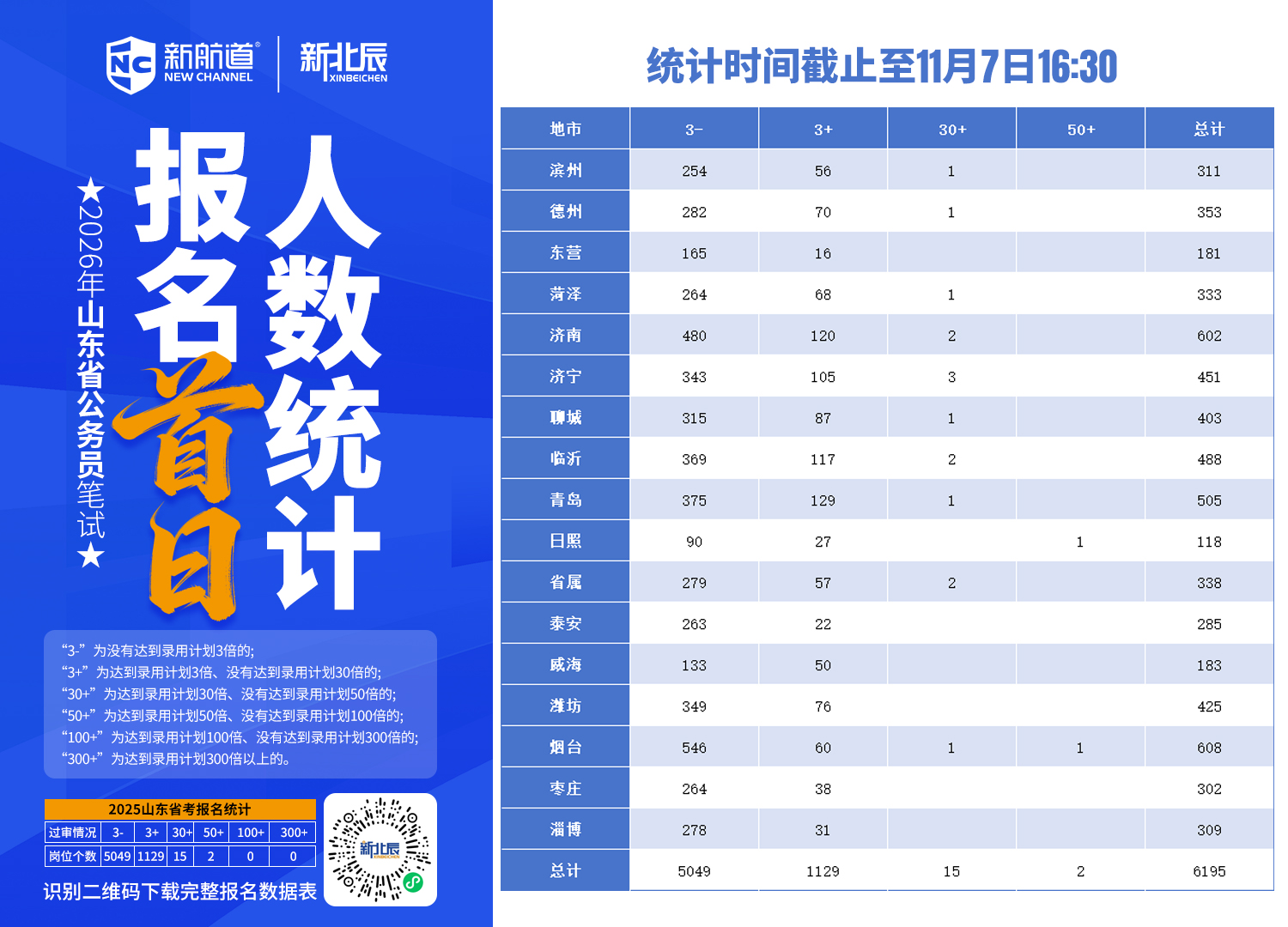 提示信息按照比例等级标识发布。“3-”为没有达到录用计划3倍的;“3+”为达到录用计划3倍、没有达到录用计划30倍的;“30+”为达到录用计划30倍、没有达到录用计划50倍的;“50+”为达到录用计划50倍、没有达到录用计划100倍的;“100+”为达到录用计划100倍、没有达到录用计划300倍的;“300+”为达到录用计划300倍以上的。