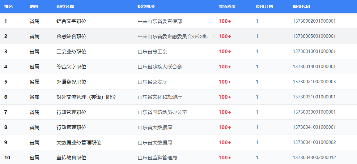 100+岗位(达100倍未达300倍)