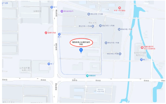 潍坊市坊子区博文现代学校。地址:潍坊市坊子区双羊街与惠贤南路交叉口东100米路北
