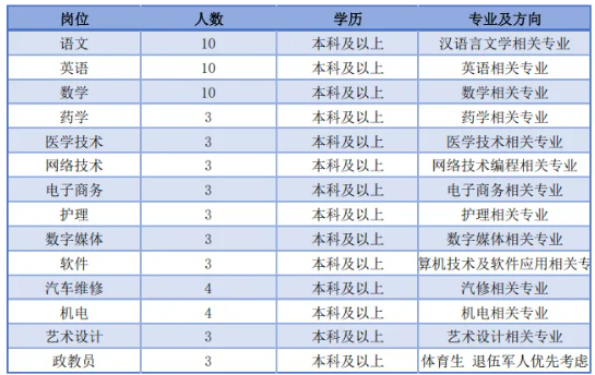 1.政治坚定,遵纪守法,爱岗敬业,敢于担当,善于合作,富有教育情怀和职业精神,有招聘岗位所需的专业素养或技能,认同学校教育理念及价值观。