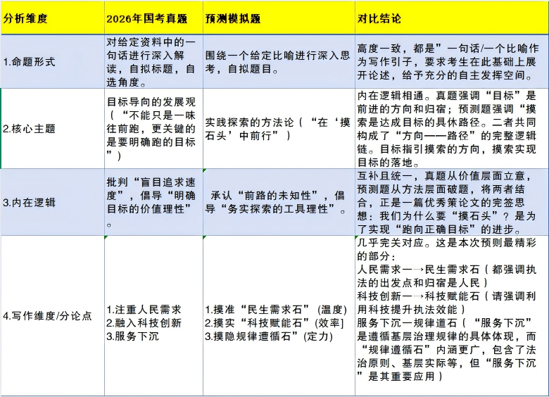 新北辰模拟题与考题在命题形式、核心主题、内在逻辑和写作维度上展现出了惊人的一致性。这并非简单的“押中题目”,而是准确地把握了当前行政执法类申论命题的核心脉搏与考察方向。