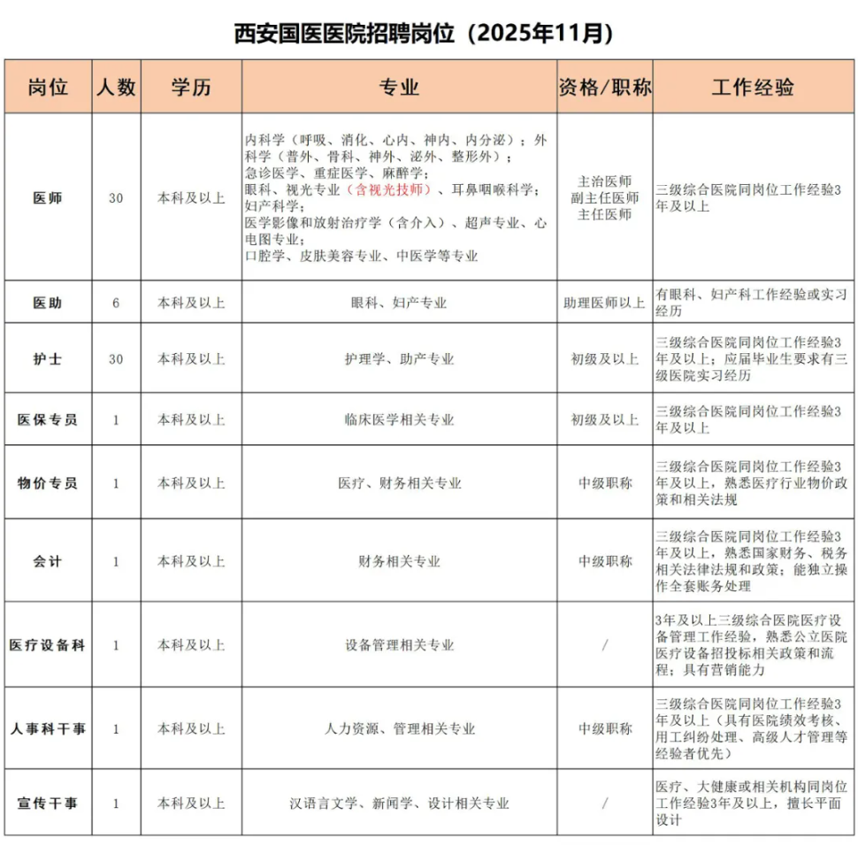 原标题:【招聘公告】西安国医医院(西安市第四医院西咸院区)公开招聘,医师/护士/宣传/会计等岗位,职等你来!
