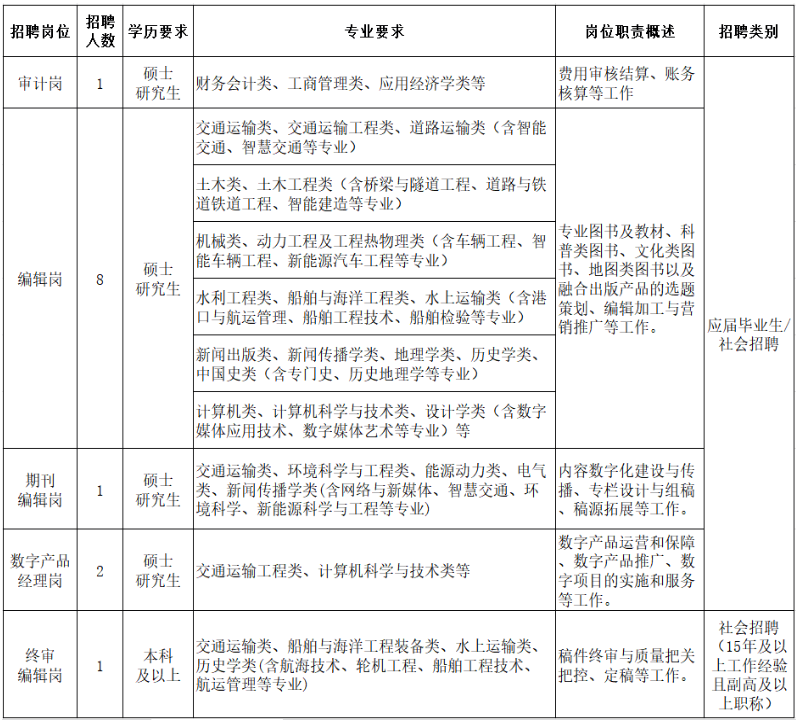 6. 全日制大学本科及以上学历,应届高校毕业生为全日制统招学生(在校期间为非在职,不含定向生、委培生)。除终审编辑等须有长期工作经验要求的岗位外,社会招聘人员年龄一般不超过38岁。