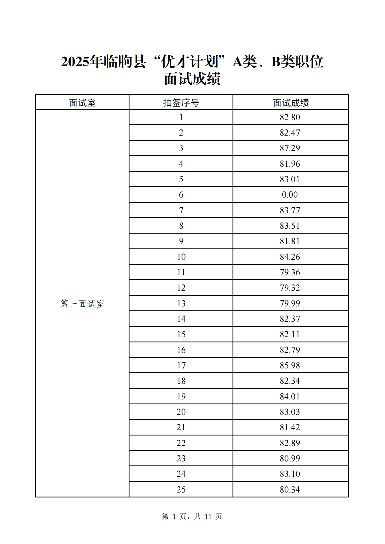 2025年临朐县“优才计划”A类、B类职位面试成绩