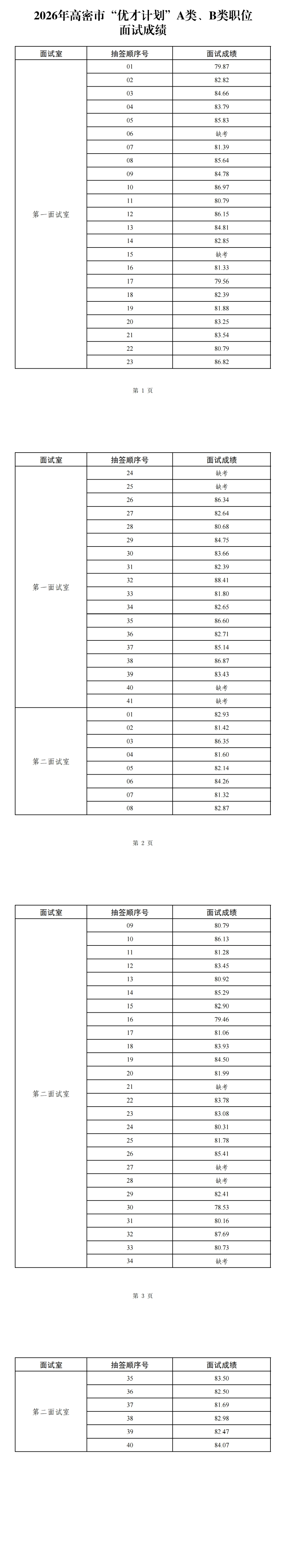 原标题:2026年高密市“优才计划”A类、B类职位面试成绩