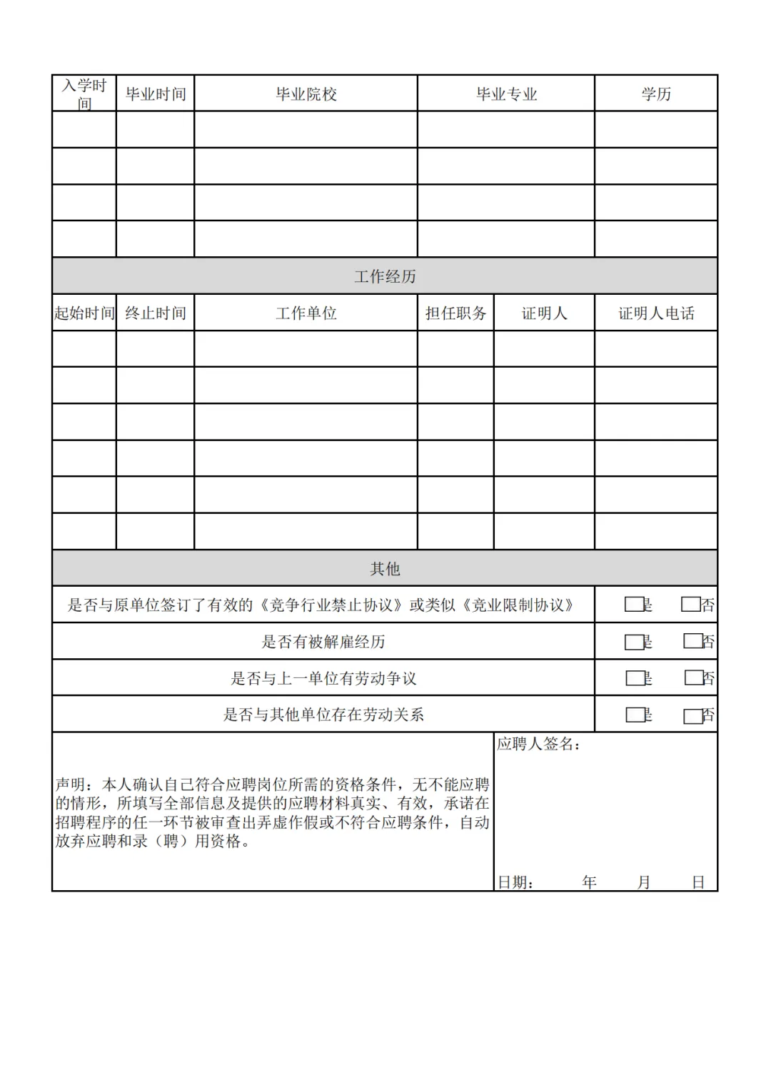 应聘人员登记表